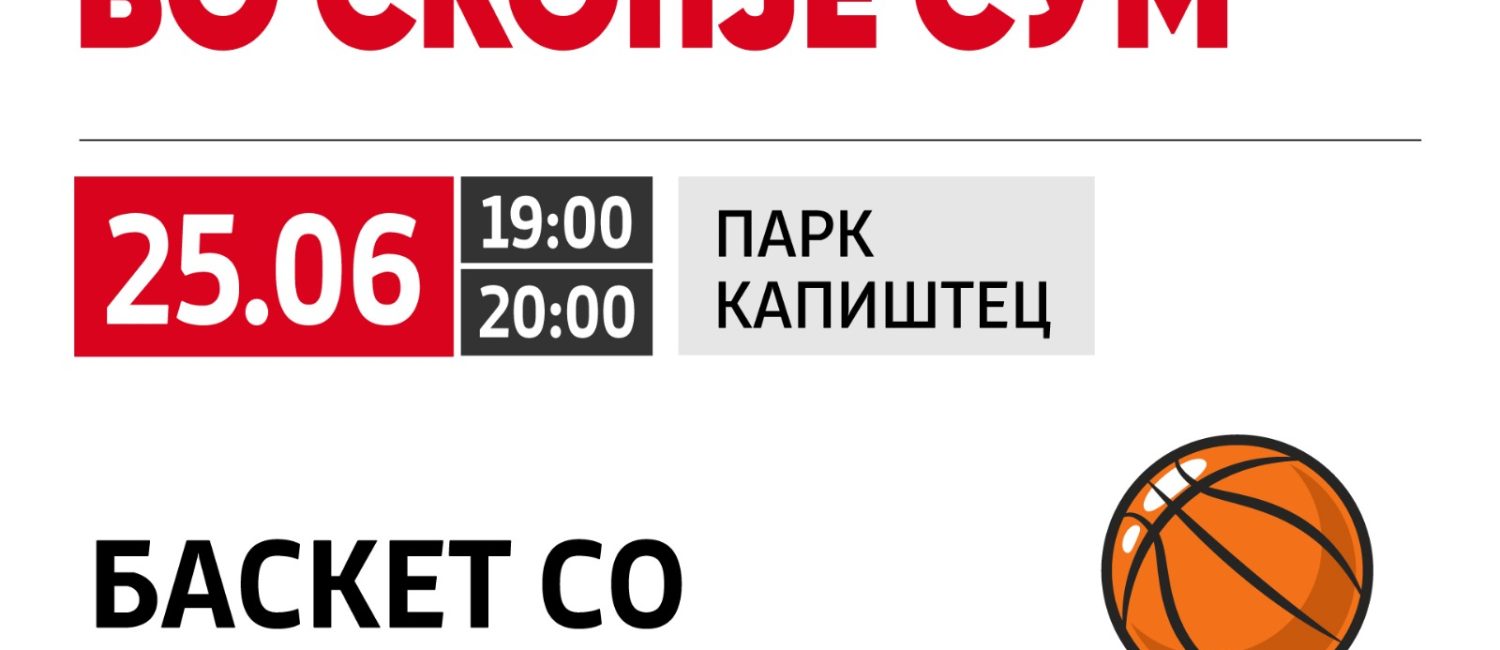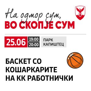 Вечерва играме пријателски натпревар со кошаркарите на КК Работнички. Дојдете во паркот во Капиштец и навивајте. Вечерва ги започнуваме и четири дневните активности во рамки на проектот „На одмор сум, во Скопје сум“. Бидете дел од нив и уживајте во сѐ што следи.