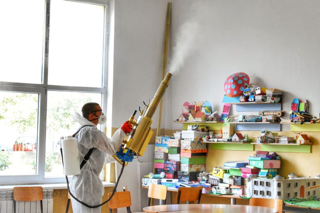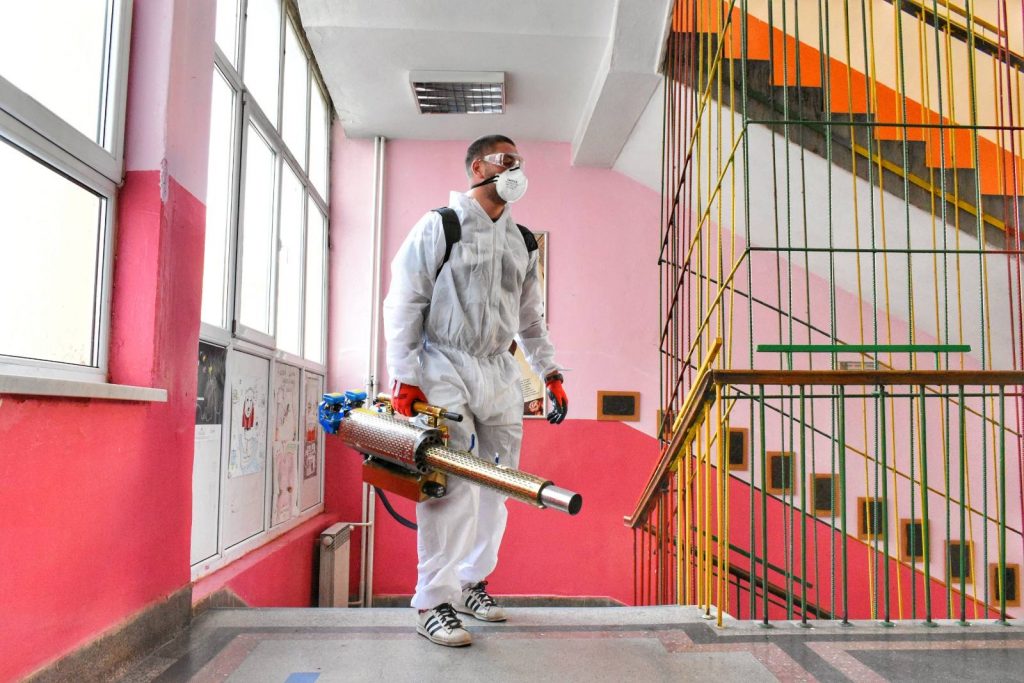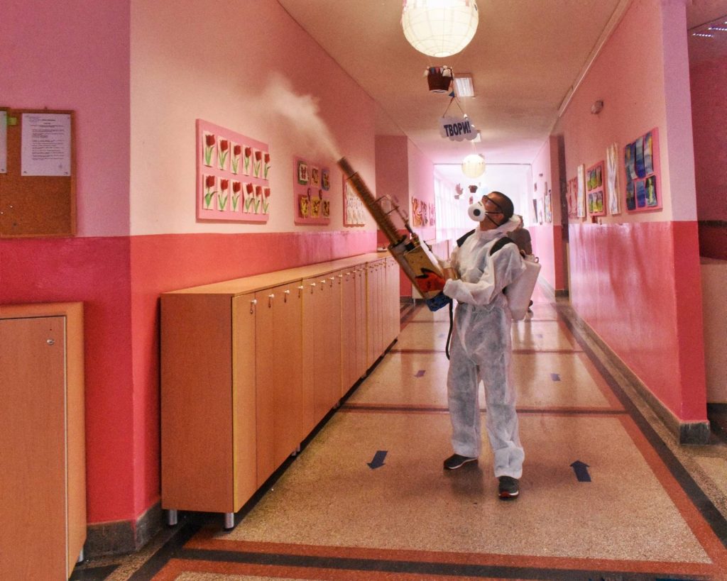Со цел зголемување на безбедноста и почитување на превентивните мерки, овластена компанија, изврши темелна дезинфекција во внатрешноста и на надворешните делови на училиштата. Со дезинфекција се опфатени сите влезови и излези во училиштето, подовите, ходниците, скалите, тоалетите, просториите за вработените, помошните простории, како и сите работни површини каде што учениците ќе имаат контакт при следење на наставата за време на училишниот престој.
