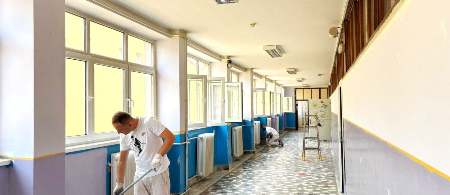 Градоначалникот Горан Герасимовски информира дека во моментов се изведуваат градежно-занатски активности кои вклучуваат замена на подовите во 3 кабинети и 5 училници, обновување на подовите со стругање и лакирање во дополнителни 3 училници, гипсарски работи и предвидено е молерисување на целиот училиштен објект.
