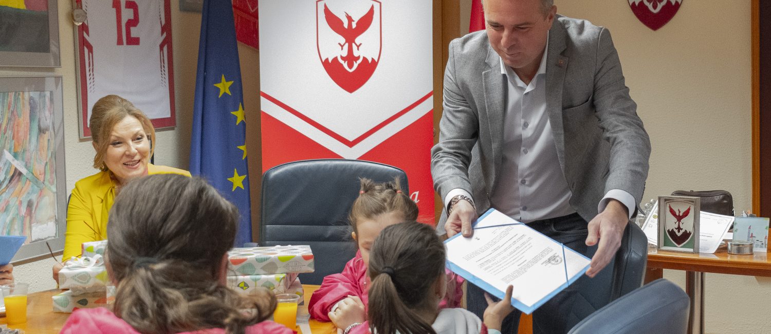 Доделувањето на стипендиите беше повод за денешната посета на учениците во кабинетот на градоначалникот Герасимовски, кој накусо ги запозна децата со работата и активностите на општината.