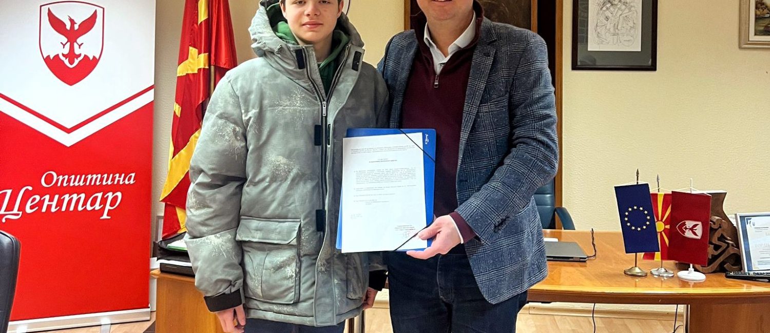 Градоначалникот на Општина Центар Горан Герасимовски, денеска се сретна со Валентино Атанасоски, ученик во деветто одделение од ООУ „Кочо Рацин“ кој ја претставуваше општината и државата на 21 Меѓународна јуниорска олимпијада по природни науки во Букурешт – Романија кадешто освои бронзен медал.