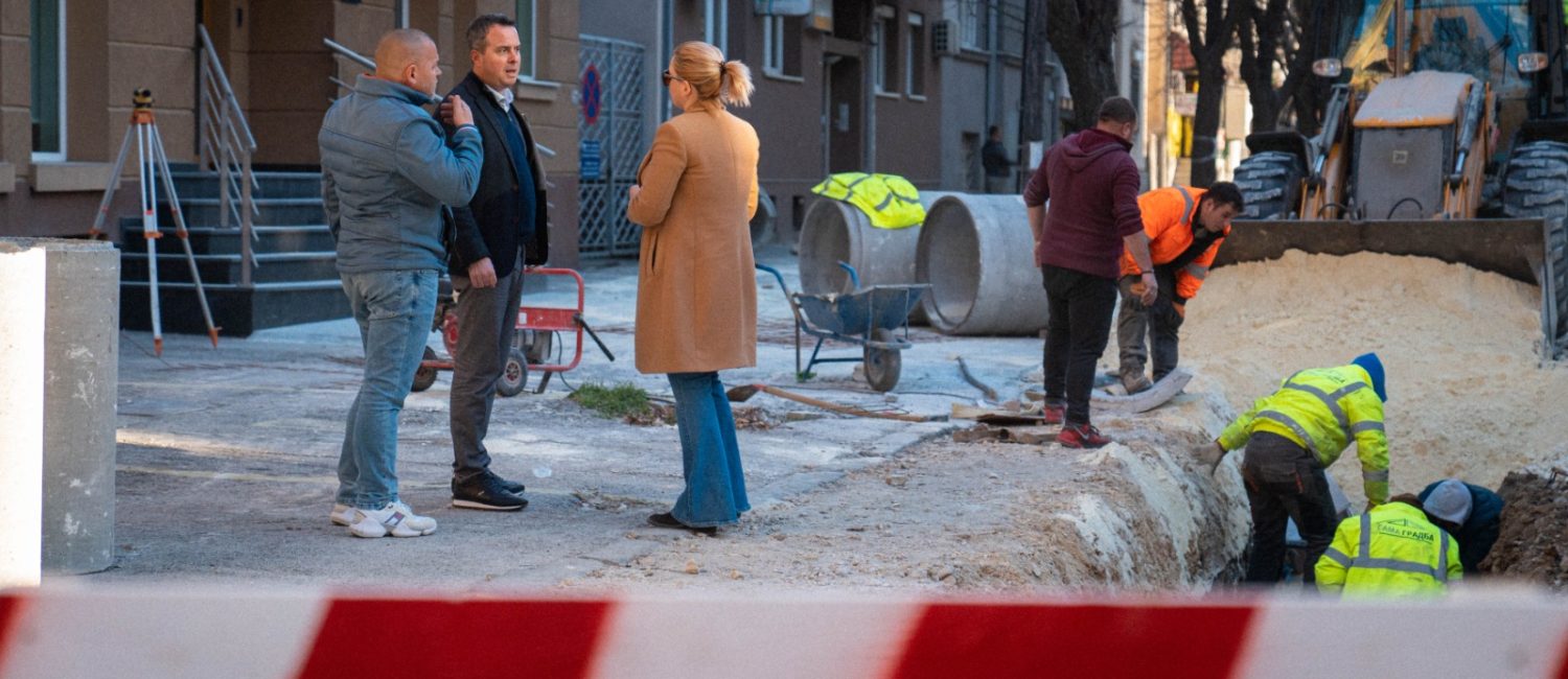 Градежните зафати на улицата Ленинова течат со интензивна динамика. Градоначалникот на Општина Центар Горан Герасимовски беше на увид при поставувањето на атмосферската канализација која досега не постоеше.