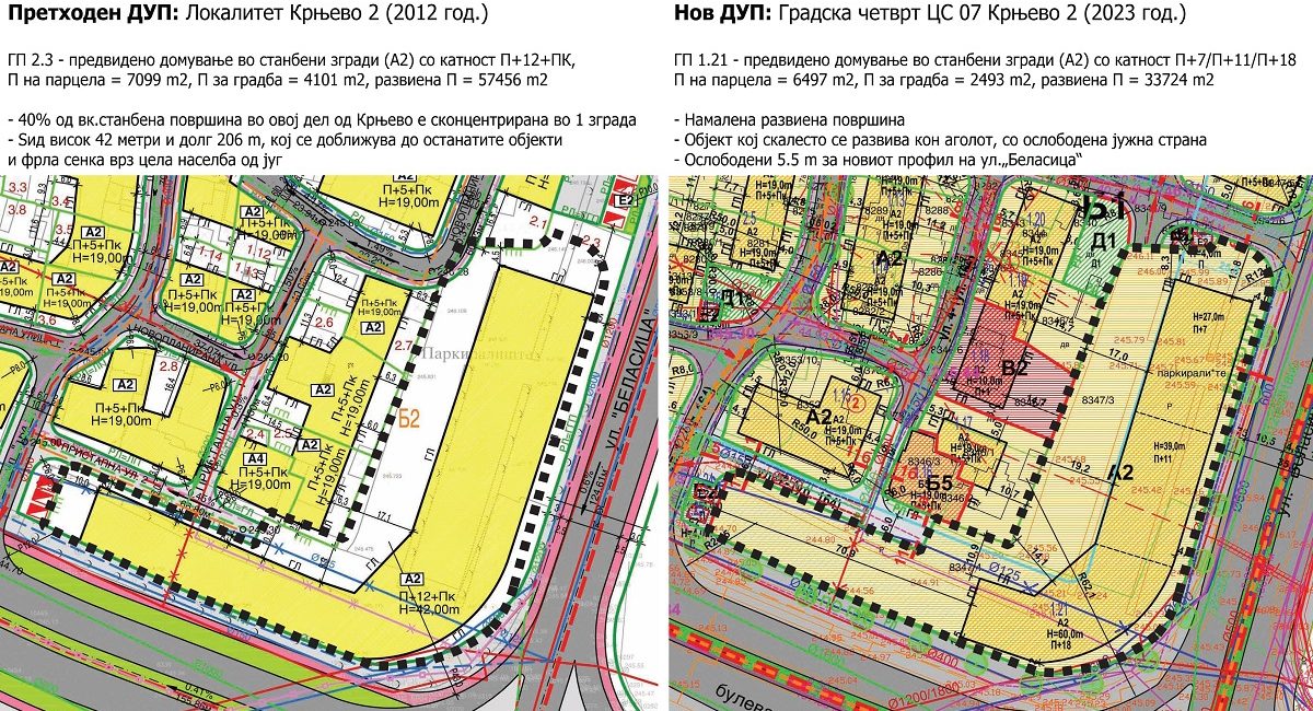 Во новиот план Крњево 2 кој Советот на Општина Центар го донесе на последната, 26-та седница за разлика од стариот важечки ДУП, водено е сметка и за урбанистичките решенија, односно проектирање на подобро артикулирани форми на објектите и тн. „разбиени ѕидови“.