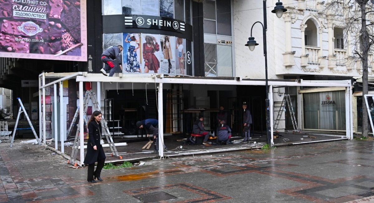 Сопственикот на бутикот „Шејн“ денес започна со отстранување на доградбата на улица „Македонија“.
