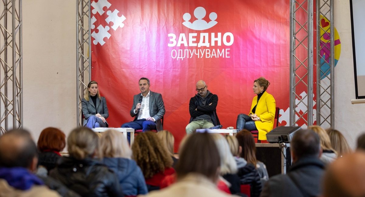 Градоначалникот на Општина Центар, Горан Герасимовски, заедно со раководителите на секторите во општината, пред преполната сала во основното училиште „Димитар Миладинов“ ја одржаа втората трибина под наслов „Заедно одлучуваме“.