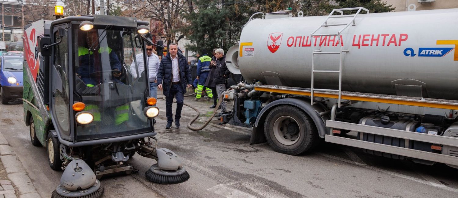 „Вчера, веднаш се мобилизиравме и еве утрово спроведуваме голема акција за чистење на нашата општина. Ја исчистивме населбата Маџир маало кадешто надлежност има градот Скопје. Тука долго време сметот не беше тргнат. Во акцијата вклучена е целата механизација со цистерна за миење на улиците, две метларки за поефикасно чистење на улиците и камион за собирање на смет. Активирани се 120 хигиеничари кои оваа недела секојдневно ќе бидат на терен за поголема чистота на Центар. Со акцијата ги подигнуваме хигиенските стандарди во нашата општина, и обезбедуваме почиста и посредена околина за сите нас”, вели Герасимовски.