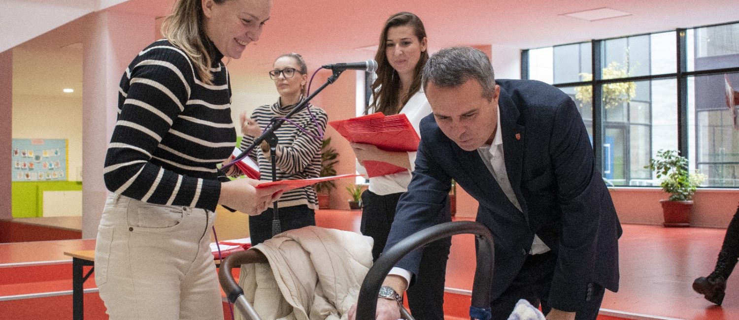 62 решенија за новороденчиња на барателите за остварување на правото за користење на парична помош за новороденче додели денеска градоначалникот на Општина Центар Горан Герасимовски. Оваа парична помош во висина од 7.000 денари, Општина Центар ја доделува редовно, во рамки на проектот на општината за првична помош и поддршка на родителите кои се жители на Општина Центар и имаат принова во семејството.