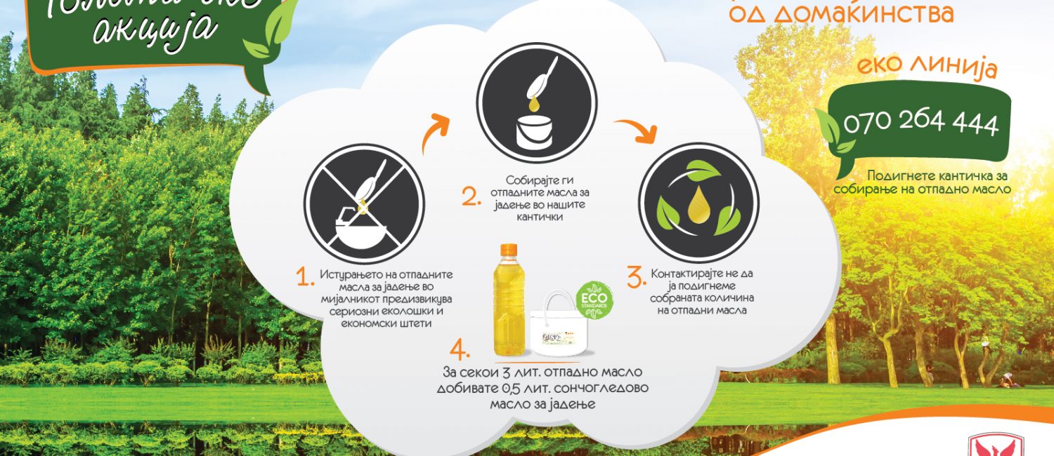 Преку концептот на циркуларна економија, отпадното масло се собира, складира, филтрира и прочистува за на крај да се добие еко суровина која се рециклира во биодизел од страна на реномирани европски фабрики. На овој начин, како одговорни граѓани, ја искажуваме нашата грижа за животната средина, здравјето, заштитата на почвата, водите, растителниот и животинскиот свет.