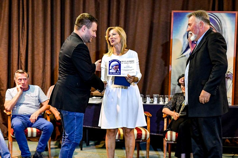Вчера вечер, на свеченото доделување посланија за хуманост во Домот на армијата, на Градоначалникот на Општина Центар, Саша Богдановиќ му беше врачена награда за хуманост и статуетка со ликот на Св. Мајка Тереза.