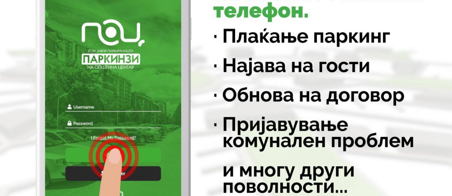 Јавното претпријатие за јавни паркиралишта „Паркинзи на Општина Центар“ ја пушта во употреба новата верзија на мобилната апликација со која сите услуги на претпријатието стануваат достапни и на мобилните телефони. Од денес, со првото преземање на апликацијата сите корисници ќе добијат 2 часа бесплатен паркинг, додека жителите на Општина Центар ќе добијат 30 часа бесплатен паркинг во гостинскиот пакет на М-картата.