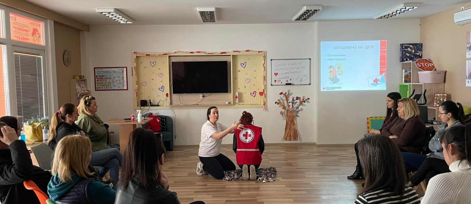 Претходно во март месец оваа година Општина Центар во соработка со Црвениот крст, спроведе проект “Едукативни активности за прва помош во основните училишта” кој го реализираше со одделенските наставници од сите 8 основни училишта (вкупно 77 одделенски наставници). Целта на проектот беше наставниците да се здобијат со знаења и вештини за соодветно и навремено постапување во инцидентни ситуации односно давање на прва помош при евентуални повреди кај учениците.