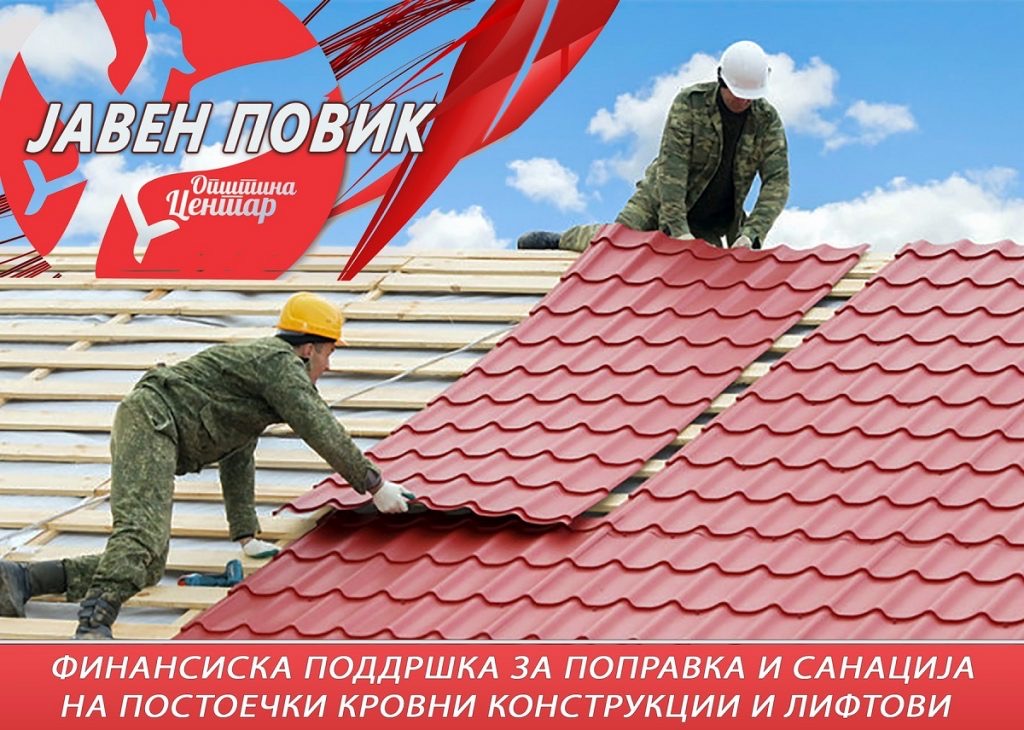 Општина Центар објавува Jавен повик за финансиска поддршка за поправка и санација на постојните покривни конструкции и постојните лифтови во станбените згради на подрачјето на Општина Центар, во согласност со Програмата за комунални дејности за 2021 година.