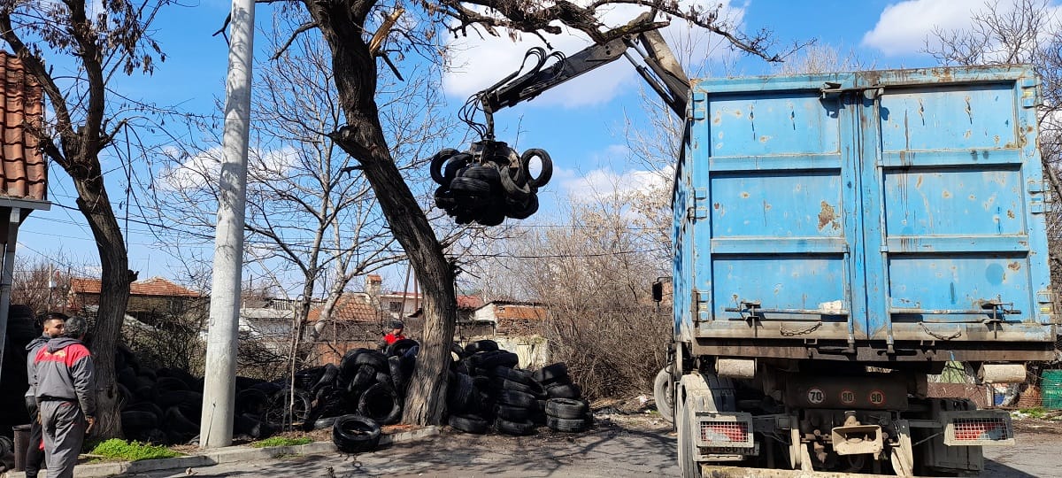 Во соработка со Град Скопје и фирмата „Еко-циркон“, во текот на денешниот ден, спроведена е акција за подигнување на отпадните гуми со механизација – камион грајфер.