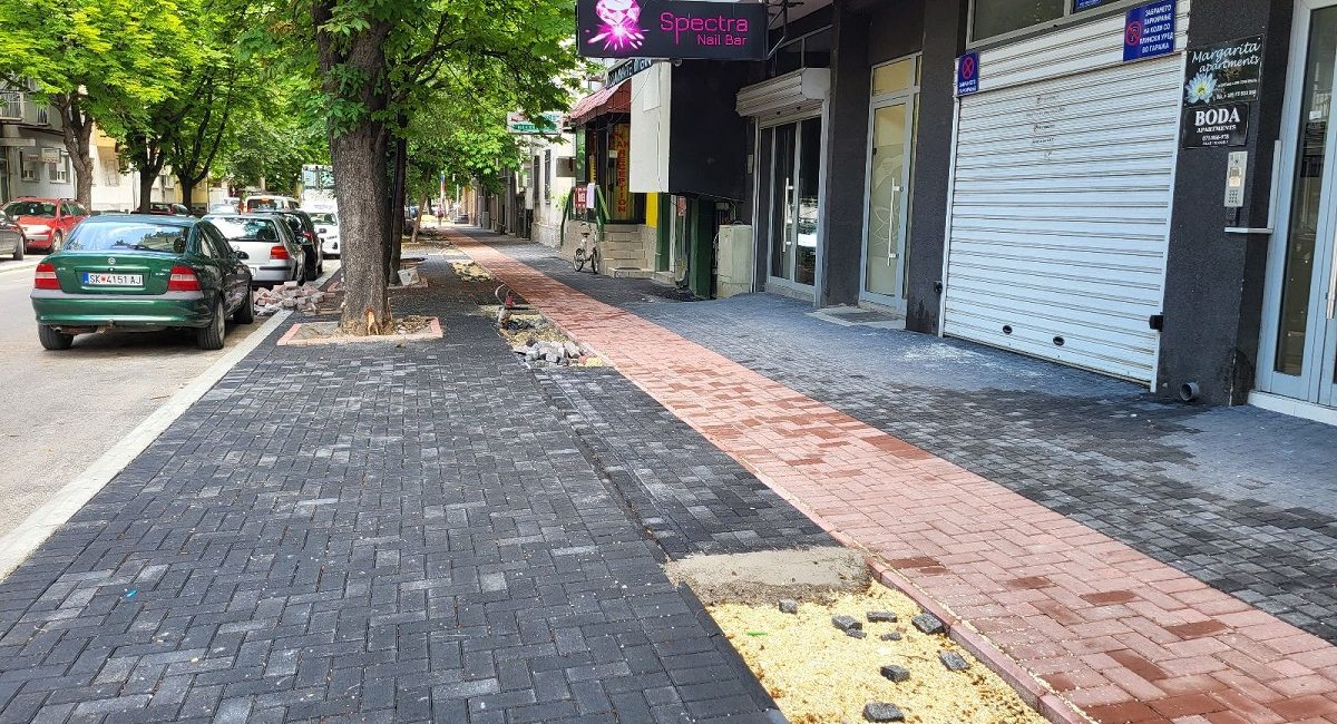 Се поставуваат бехатон плочки на пешачките патеките, финишира изведбата на велосипедските патеки, се оформува урбаното зеленило и се работи на изведба на резидентните паркинзи. Досега готови се 70% а краен рок за завршување на реконструкцијата на улицата е средина на јули.