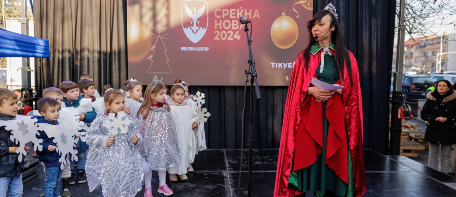 „Добредојдовте во магичната приказна на Општина Центар. Се радувам што ве гледам во толкав број и во празнично расположение. За вас денеска подготвивме многу слатки изненадувања и многу волшебни мигови. Ја донесовме Самовилата, а тука е се разбира и Дедо Мраз, кој е задолжен за вашите желби.