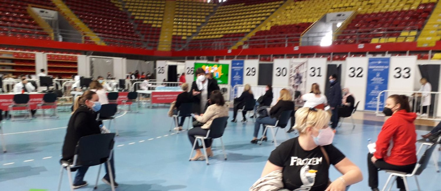 За таа цел, наставничките, воспитувачките и вработените во основните училишта и детските градинки се дел од процесот на вакцинација кој во моментов се одвива во спортскиот центар „Борис Трајковски“.