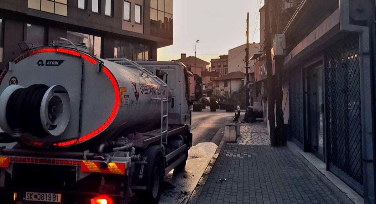 Вчера вечер цистерна ги миеше улиците 50 Дивизија, кај Министерството за внатрешни работи, улиците Белградска, Партениј Зографски, Рилски Конгрес, Востаничка, Адам Мицкиевиќ, Загребска, Козара и карши Влада.