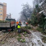 Екипи од ЈП „Паркови и зеленило“ како надлежна институција за одржување на зеленилото ги санира штетите најпрво расчистувајќи ги коловозите со цел да обезбеди непречен и безбеден сообраќај.
