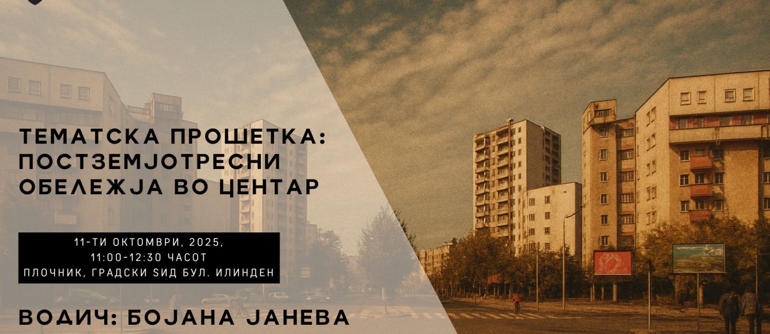 Со задоволство ве покануваме на тематската прошетка „Постземјотресни обележја во Центар“ посветена на бруталистичката архитектура во Скопје – стил кој го обликуваше идентитетот на градот по земјотресот и сè уште предизвикува љубопитност и восхит.