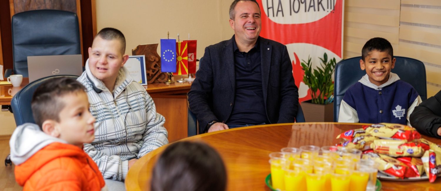 Денеска гости во кабинетот на градоначалникот Горан Герасимовски беа 20 деца од девет згрижувачки семејства од нашата општина. Си посакаа искрени желби за добро здравје во годината што доаѓа. Се дружеа и разговараа за проблемите со кои се соочуват. За овие деца е особено важно да се чувствуваат заштитени и прифатени, а ние во Општина Центар се трудиме секогаш да им излеземе во пресрет. Овојпат им обезбедивме облека, обувки и ранци во вредност од 60.000 денари, што е дел од програмата на Комисијата за еднакви можности – КЕМ. Благодарност и до згрижувачите бидејќи тоа е многу благодарна, хумана и исполнителна работа.