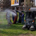 Работна акција на општинската администрација. Го освежуваме Паркот на Франкофонијата, фарбаме клупи, собираме смет, чистиме и миеме споменици.