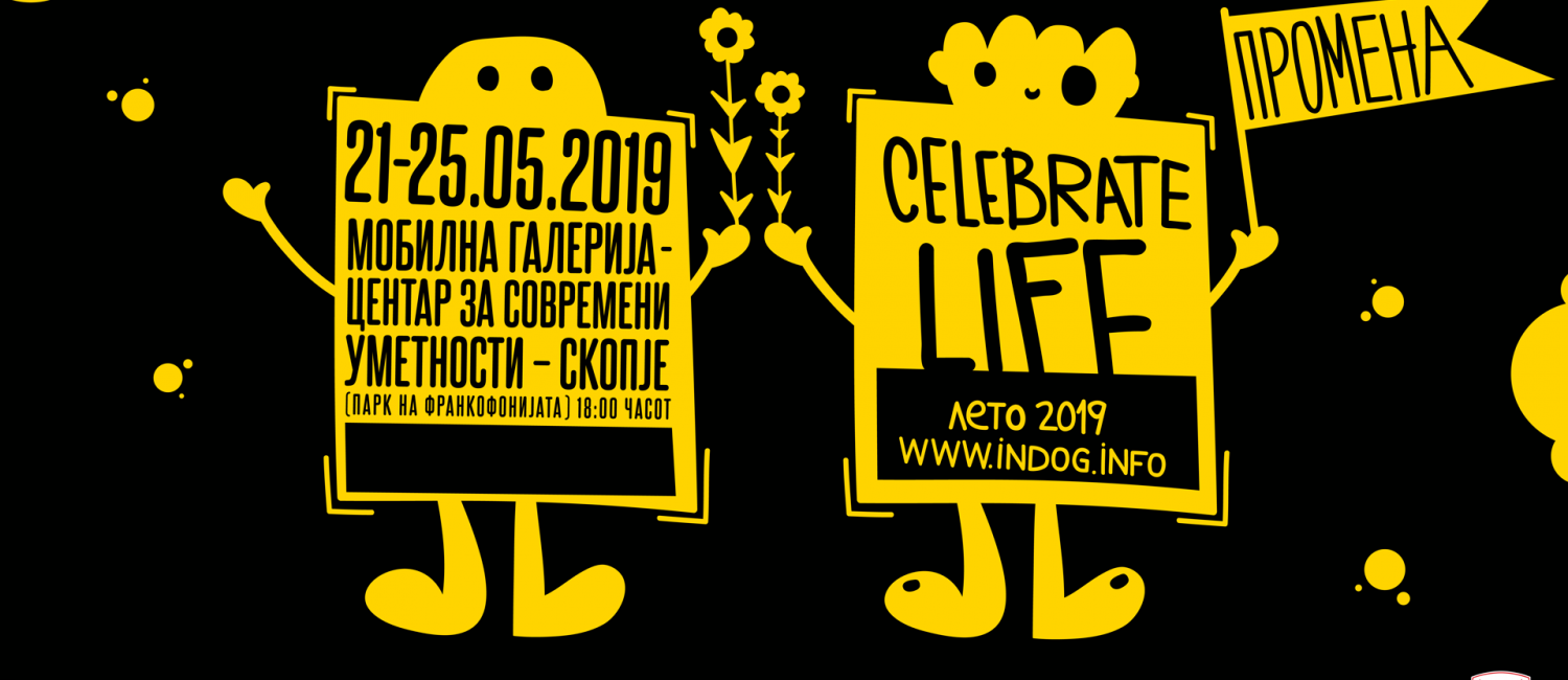 Изложбата Celebrate Life / себе – промена на дизајнерот Горан Костовски – Ind.o.g. ќе биде отворена на 21 Мај 2019 г. во Мобилна/Монтажна галерија на Центарот за современи уметности , локација: Парк на Франкофонијата со почеток во 18 часот.